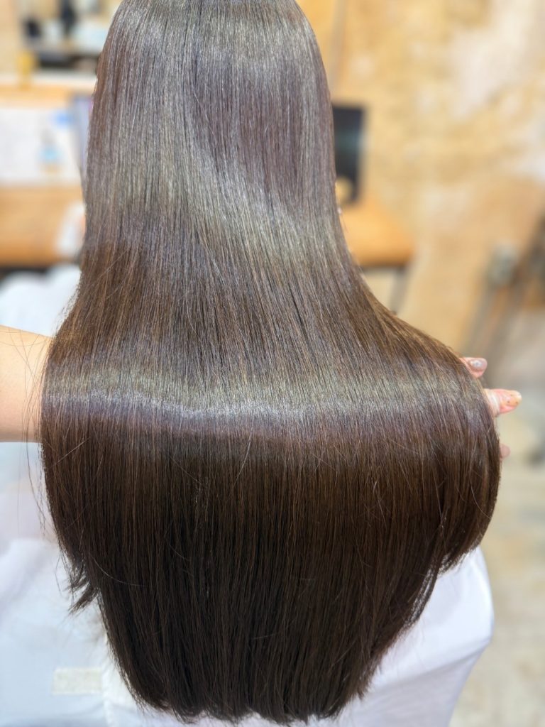 さらに 白髪染めは退色が気になりやすいものですが 髪質改善カラーは色持ちも良く つややかな印象が長く続きます。キューティクルが整うことで 光を均一に反射できるため 乾燥毛でも艶やかに見えるのが大きな魅力です。