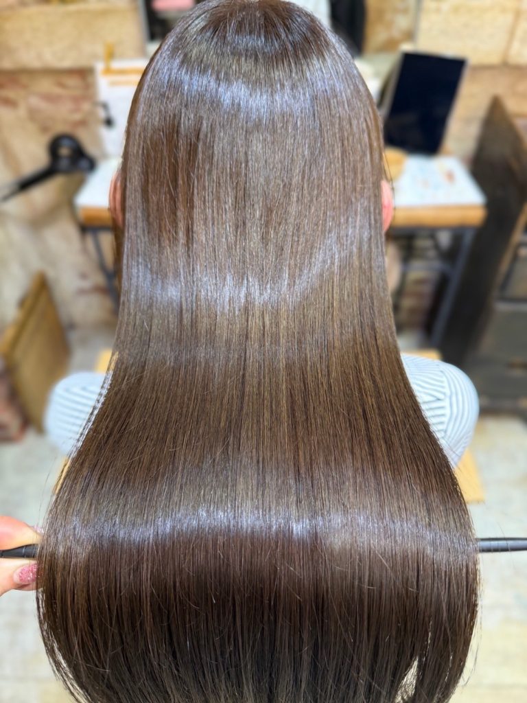 私も最初は半信半疑でしたが 髪質改善カラーに変えてから 明らかに変化を感じました。ドライヤー後の広がりが落ち着き 手ぐしでもまとまるようになったんです。これは 髪の中に栄養と水分がしっかり入っている状態だから起こる変化です。