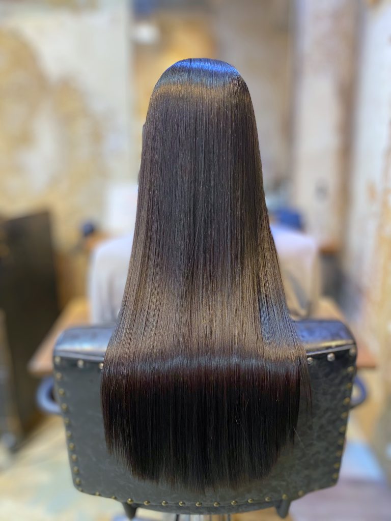 エイジング毛は、根元は広がりやすく、毛先は乾燥しやすいという特徴があります。そのため全体を同じ強さで伸ばすと、不自然な仕上がりになりやすくなります。髪質改善ストレートエステでは、部位ごとに状態を見極めながら調整することで、根元のボリュームを抑えつつ、毛先はやわらかくまとまる質感を目指します。